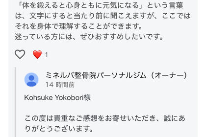 新しいお客様の声 北千住から足立区六町駅1分のミネルバ整骨院パーソナルジムをご選択して頂きありがとうございます。     姿勢改善、不調改善からの元気なお身体へ、肥満状態からの健康...