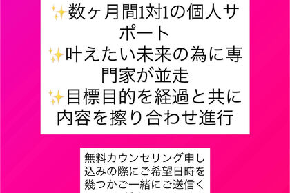 数ケ月4~6㎏のダイエットから10㎏~20㎏のダイエット依頼などお客様の目標や理想の身体に合わせてダイエット計画と実践サポートを専門家の元ナビゲーションしていきます!     何か月...